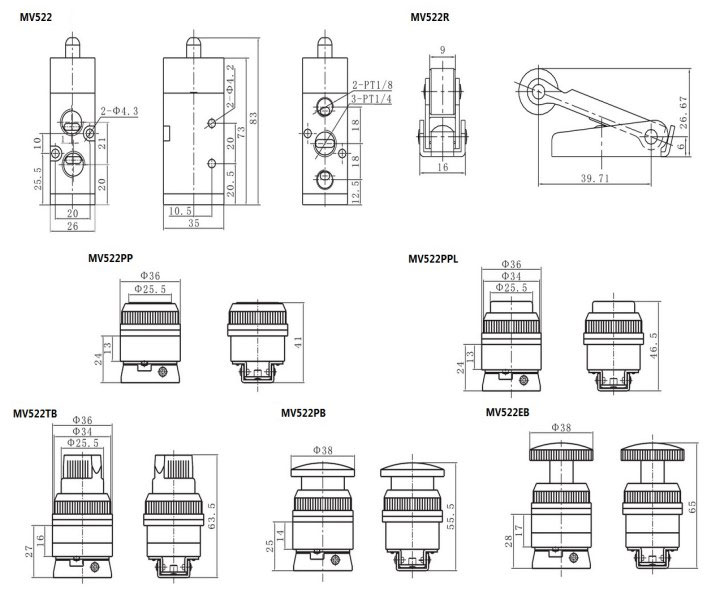 5 Port 2 Way Airtac replacement Mechanical Pneumatic Valve MV-09 MV-08 MV-10 MV-10A